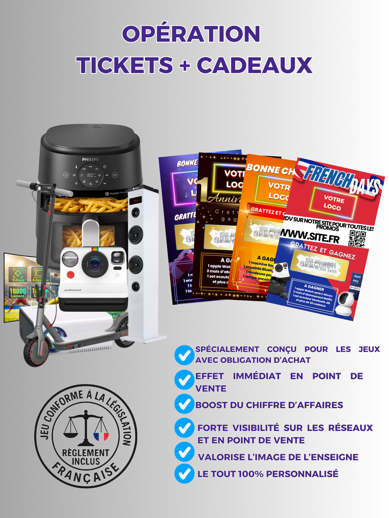 – Tickets à gratter 100% personnalisés